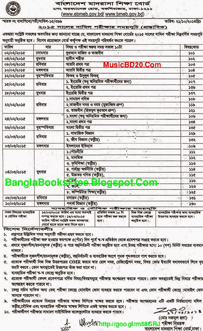 Dakhil exam routine 2015 Bangladesh Bangla Books Free Download